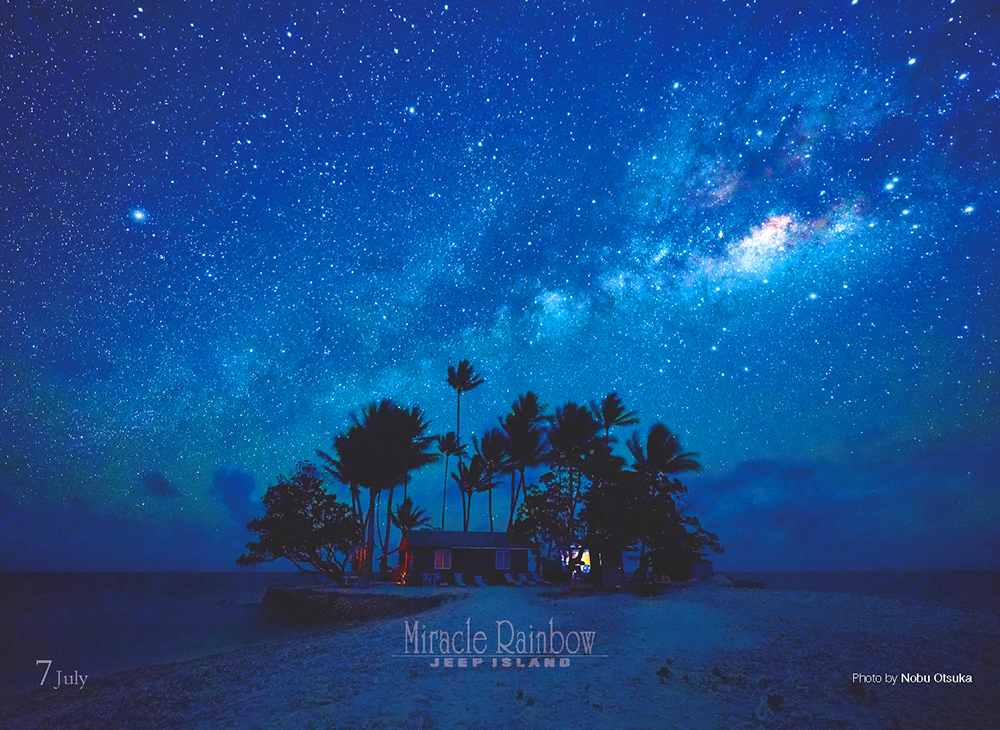 【12月 一年の締めくくりは、幻想的なジープ島に掛かる天の川のシーンで。気持ちは大きく、新しく始まる来年を夢見ながら。。