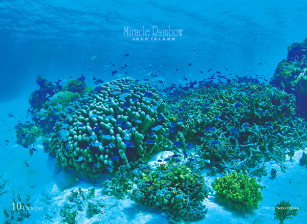 【10月】 台風こそ来るとはいえ、日本も穏やかで爽やかな秋の到来。コバルトブルーに包まれたダイビングのシーンで、ホッと一息つきましょう。