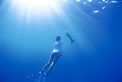 5~10mほど潜ってクルクル回れば、イルカも喜んで回ってくれます。